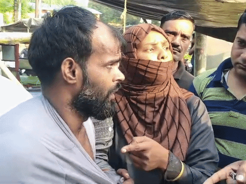 Video of wife beating her husband on the road | सड़क पर पति-पत्नी का हाईवोल्टेज  ड्रामा, VIDEO: बिजनौर में महिला ने पति को पकड़कर बीच सड़क पर पीटा, 6 महीने  से था